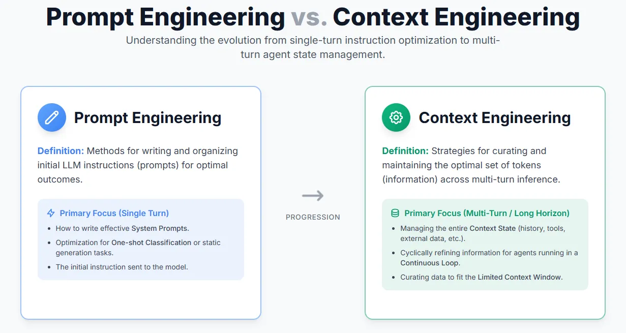 Contextual engineering, on the other hand, is not limited to prompts. this is about Manage the entire set of information the model sees during inference — Includes system messages, tool output, memory, external data, and message history. As AI agents continue to evolve to handle multiple rounds of inference and longer tasks, context engineering becomes a key discipline for curating and maintaining what truly matters within the model’s limited context window.